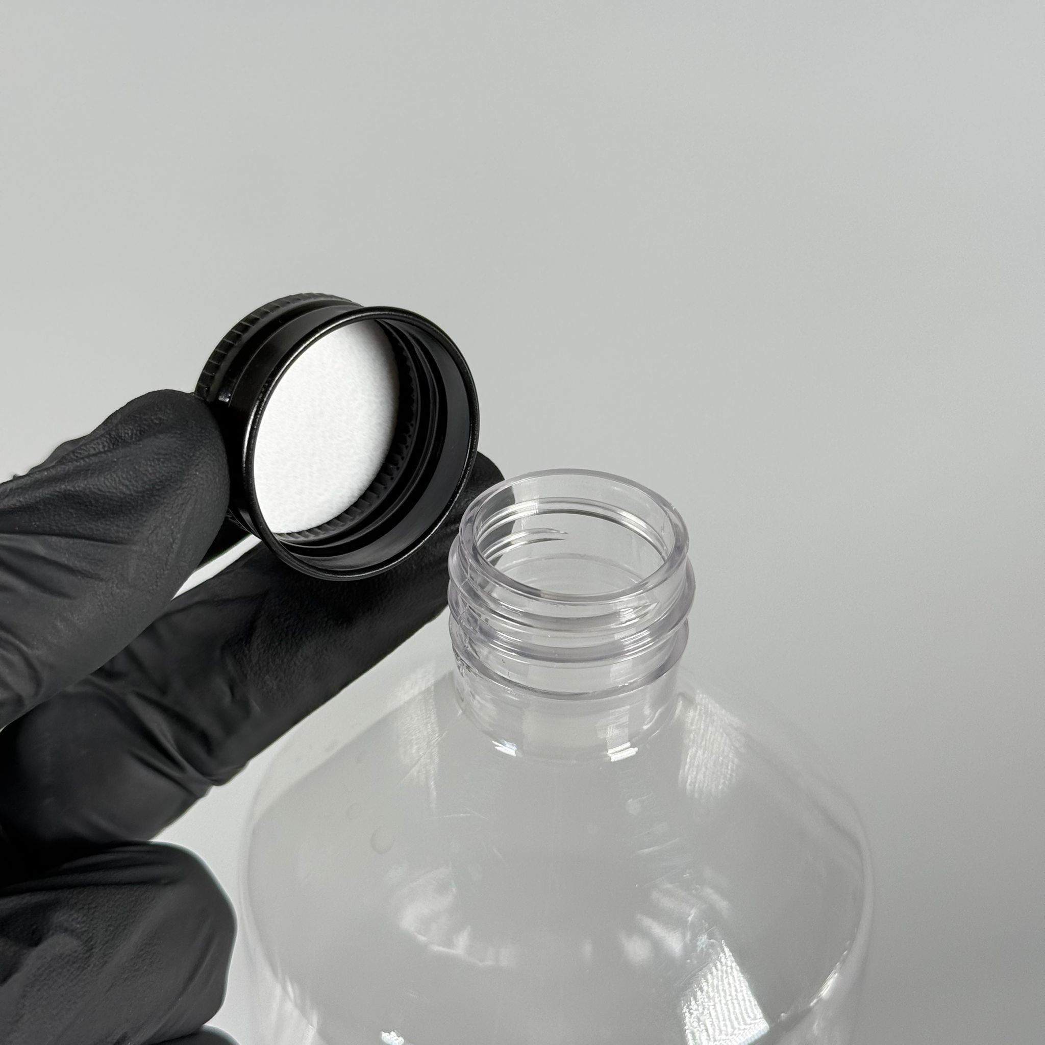 500 CC KÜT BOYUNLU ŞEFFAF PET ŞİŞE - SİYAH METAL ALÜMİNYUM KAPAKLI - 500 ML KALIN (30 gr) PET ŞİŞE