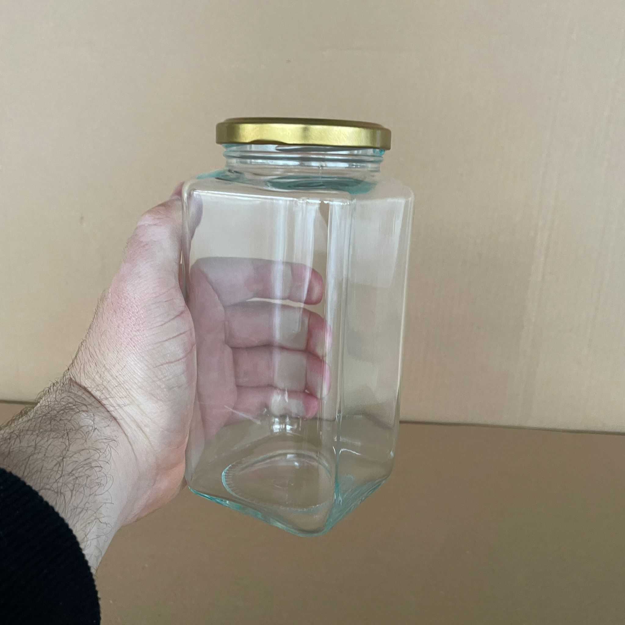 660 CC CAM KARE KAVANOZ - GOLD KAPAKLI - 660 ML KÖŞELİ KAVANOZ