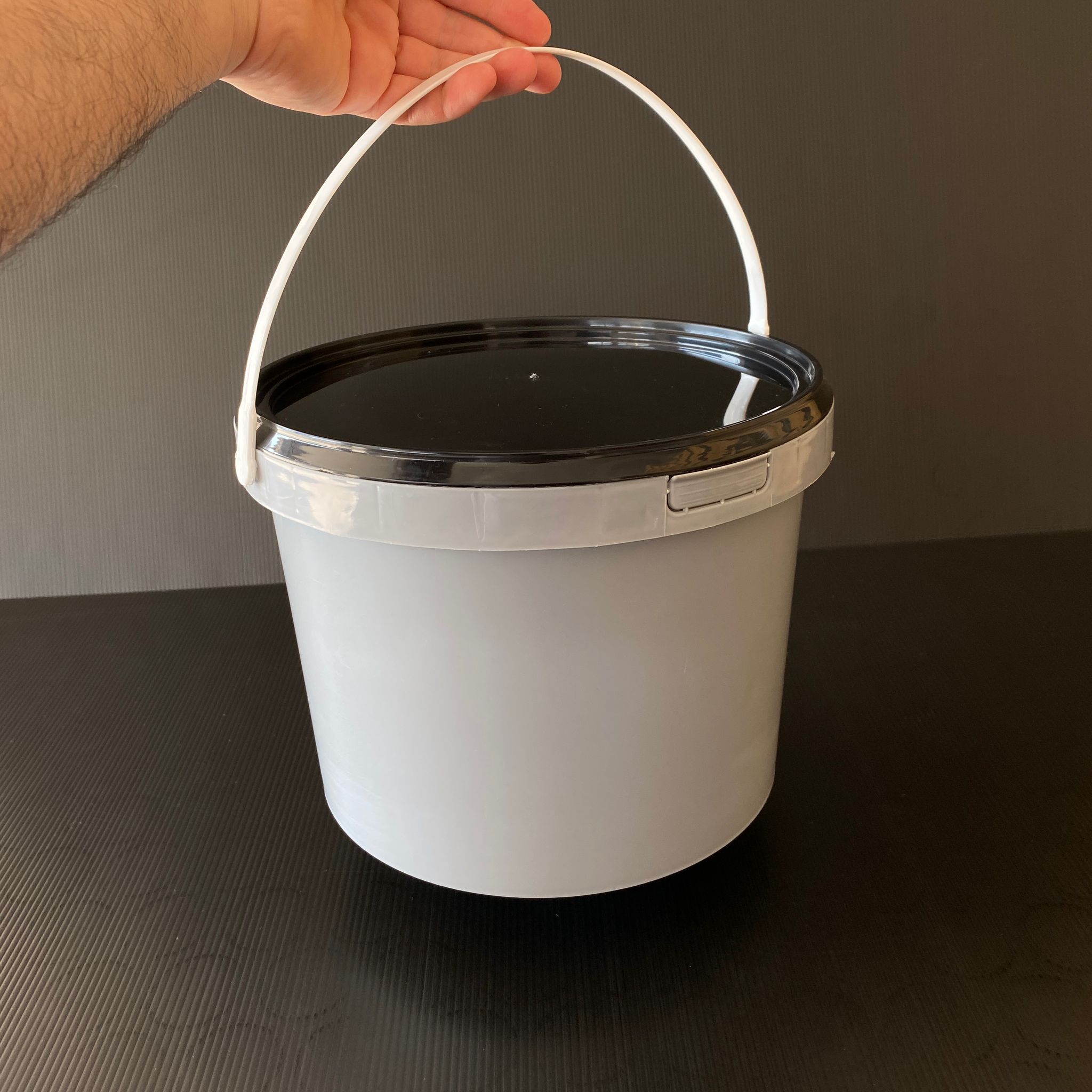 7,5 LİTRE PLASTİK KOVA - GRİ- 7,5 LT SAPLI GIDAYA UYGUN SIZDIRMAZ KİLİTLİ SİYAH KAPAKLI KOVA - BAL KOVASI, YOĞURT KOVASI, KİMYASAL KOVASI, BOYA KOVASI, TAHİN PEKMEZ KOVASI, ZEYTİN KOVASI VB ALANLARDA KULLANILABİLİR.