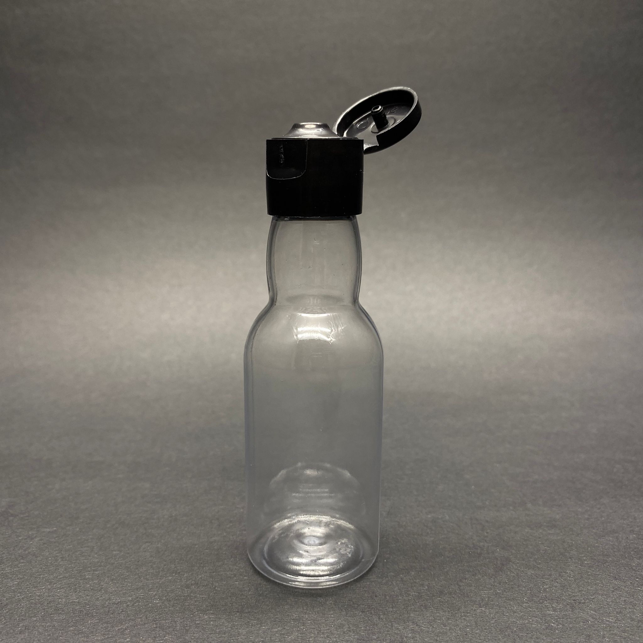 40 CC ŞEFFAF UZUN BOĞAZLI PET ŞİŞE - AKITICILI SİYAH FLİPTOP KAPAKLI - 40 ML BOĞAZLI PET ŞİŞE