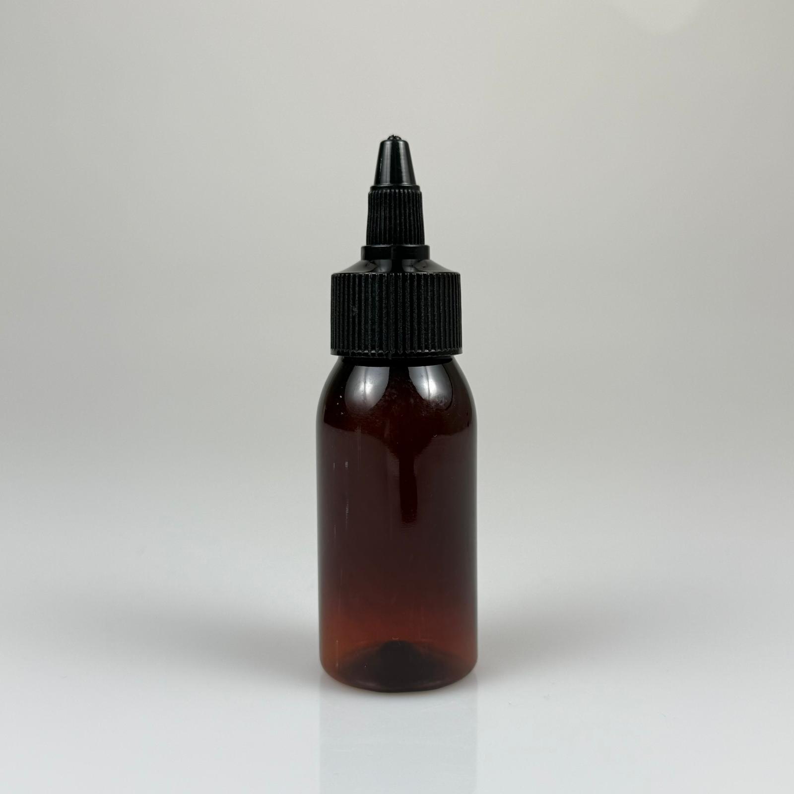 YAĞ, SOS, ACI SOS, SİRKE, SRIRACHA, MÜREKKEP, TUTKAL AKITICI VB BOŞ ŞİŞELERİ - SİYAH SİVRİ TWİST AKITICI KAPAK + 50 ML AMBER SERT PET PLASTİK ŞİŞE TAKIM