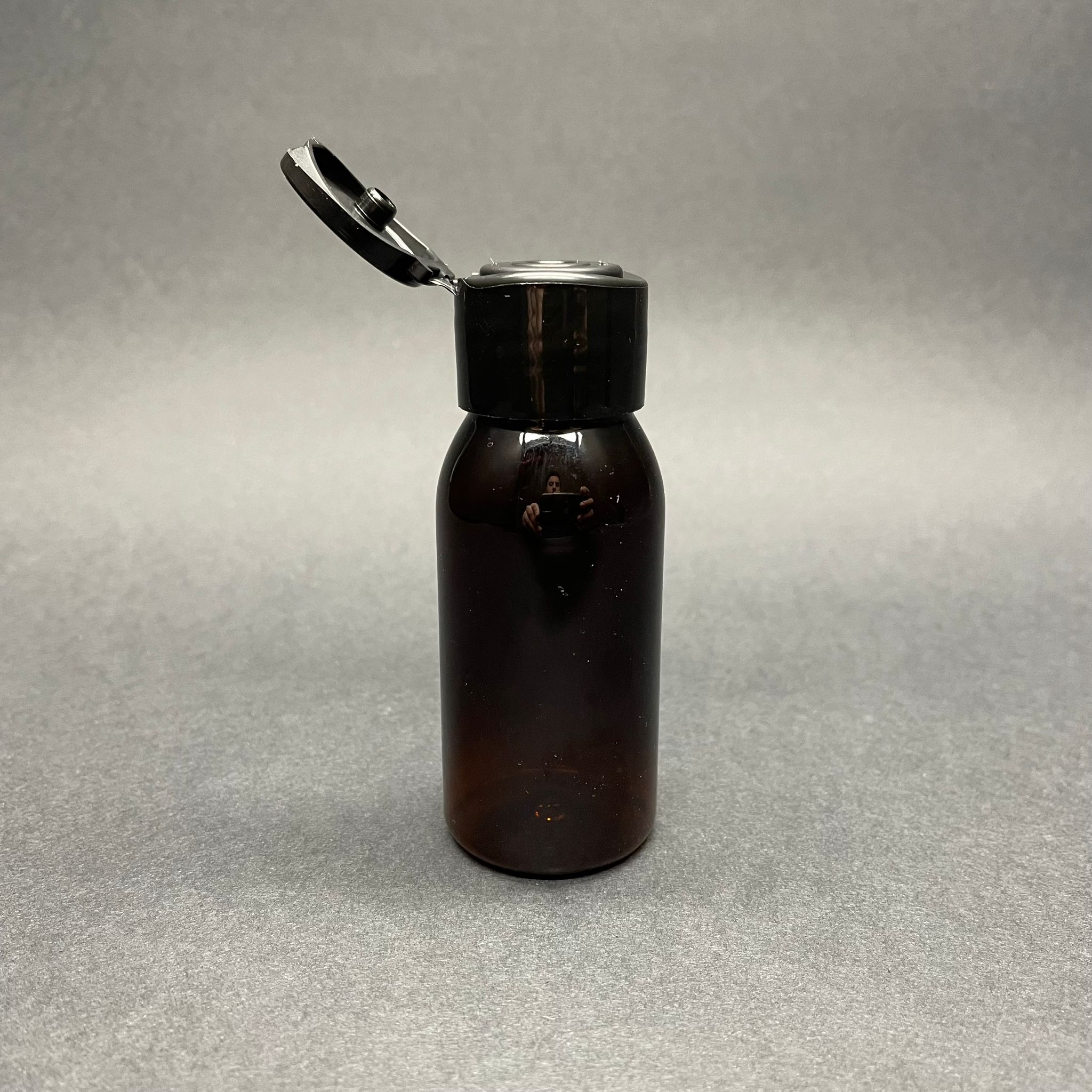 50 CC AMBER PET ŞİŞE - SİYAH YENİ FLİPTOP AKITICI KAPAKLI - 50 ML KAHVERENGİ PLASTİK ŞİŞE