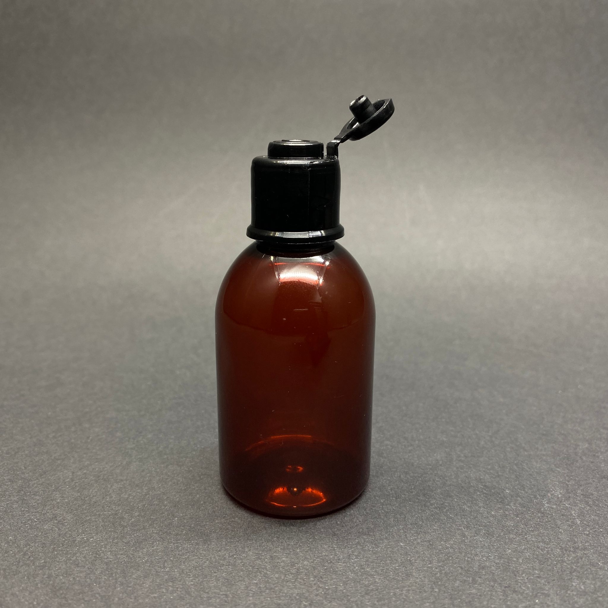 50 CC AMBER PET ŞİŞE - SİYAH FLİPTOP AKITICI KAPAKLI - 50 ML KAHVERENGİ PLASTİK ŞİŞE