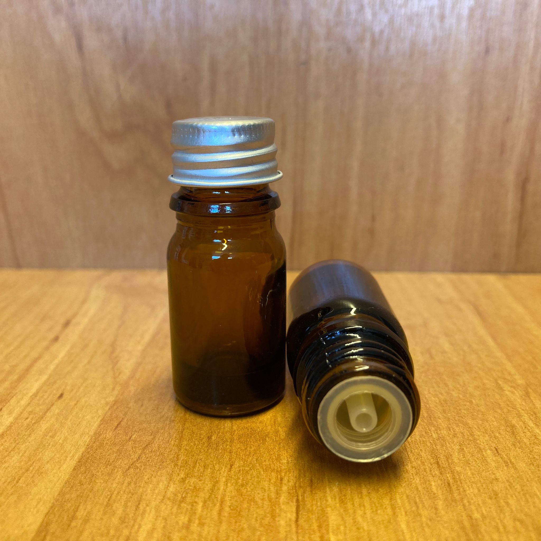 5 CC AMBER İÇTEN DAMLALIKLI - GÜMÜŞ METAL KAPAKLI CAM ŞİŞE - 5 ML KOLONYA TIPALI CAM ŞİŞE