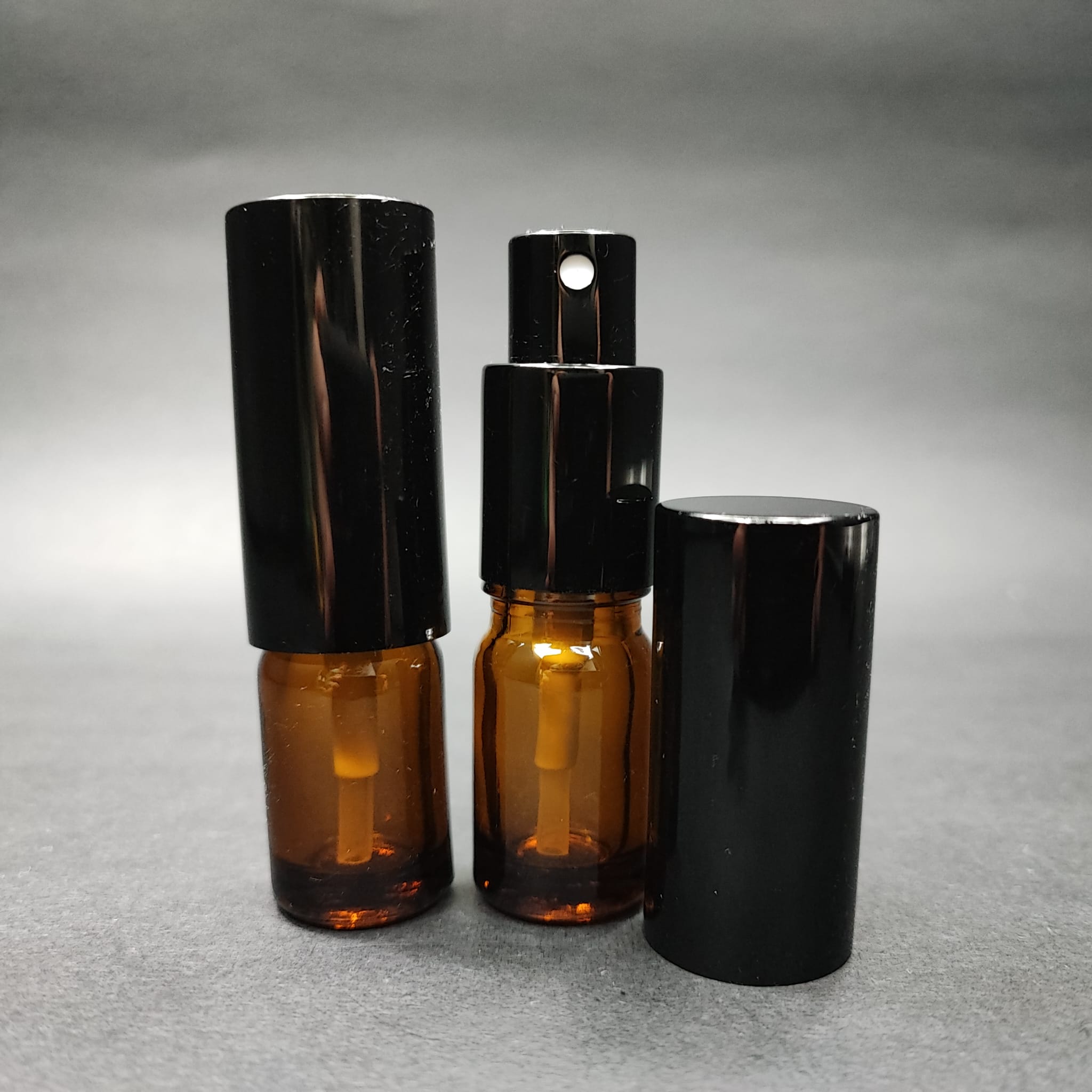 5 ML LÜKS VİDALI VALF ÇEVİRME PARFÜM ŞİŞELERİ - 5 CC AMBER CAM ŞİŞE - SİYAH METAL SPREYLİ KAPAKLI SET