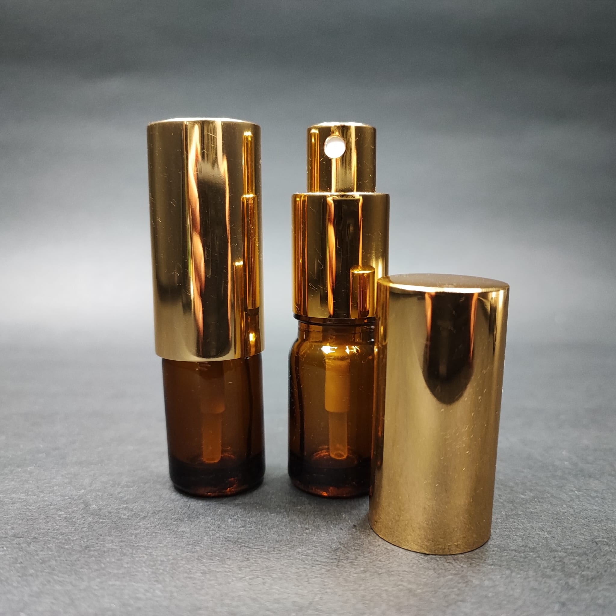 5 ML LÜKS VİDALI VALF ÇEVİRME PARFÜM ŞİŞELERİ - 5 CC AMBER CAM ŞİŞE - GOLD METAL SPREYLİ KAPAKLI SET