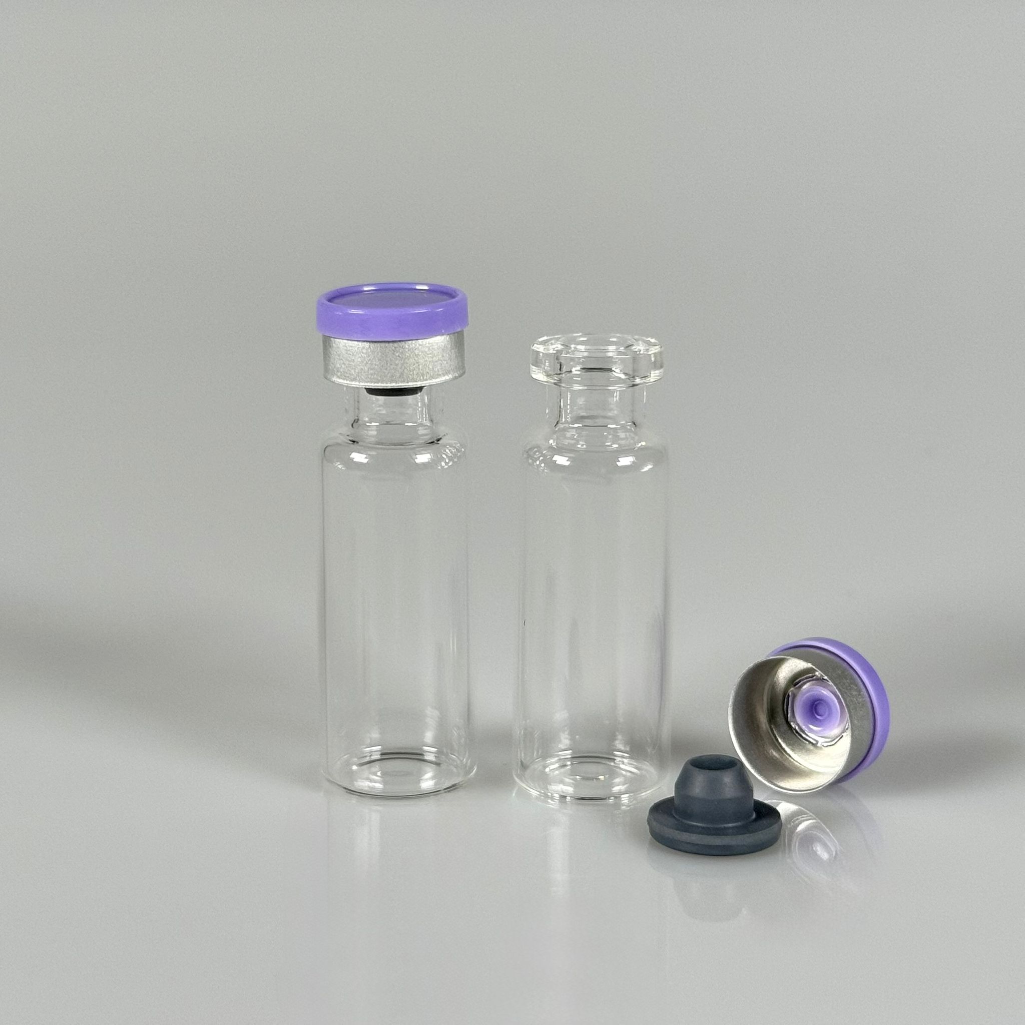 4 ML vial flakon şişe - 13 ağız 4 cc şeffaf cam ilaç şişesi + kauçuk butil enjektör tıpası + mor alüminyum kapaklı takım