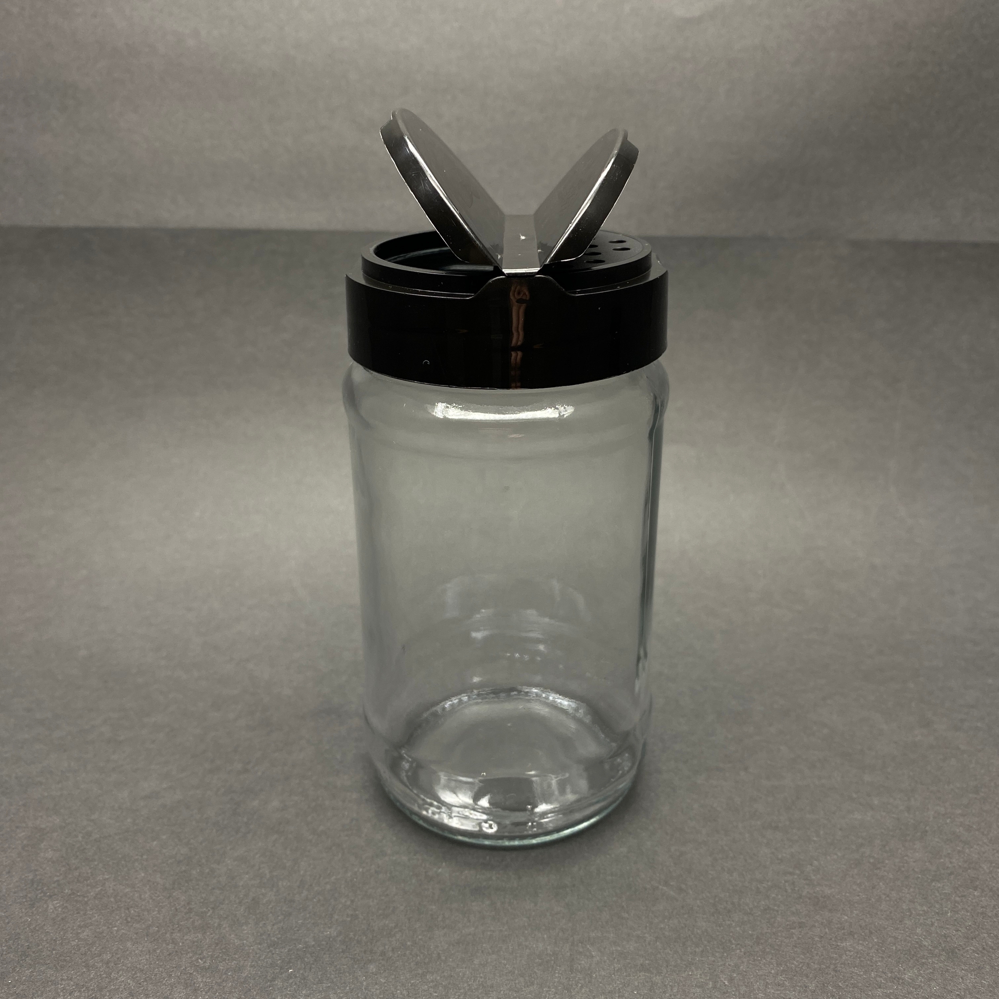 320 CC CAM BAHARATLIK KAVANOZ - 320 ML BAHARAT KAVANOZU - SİYAH AÇILIR KAPANIR KAPAKLI
