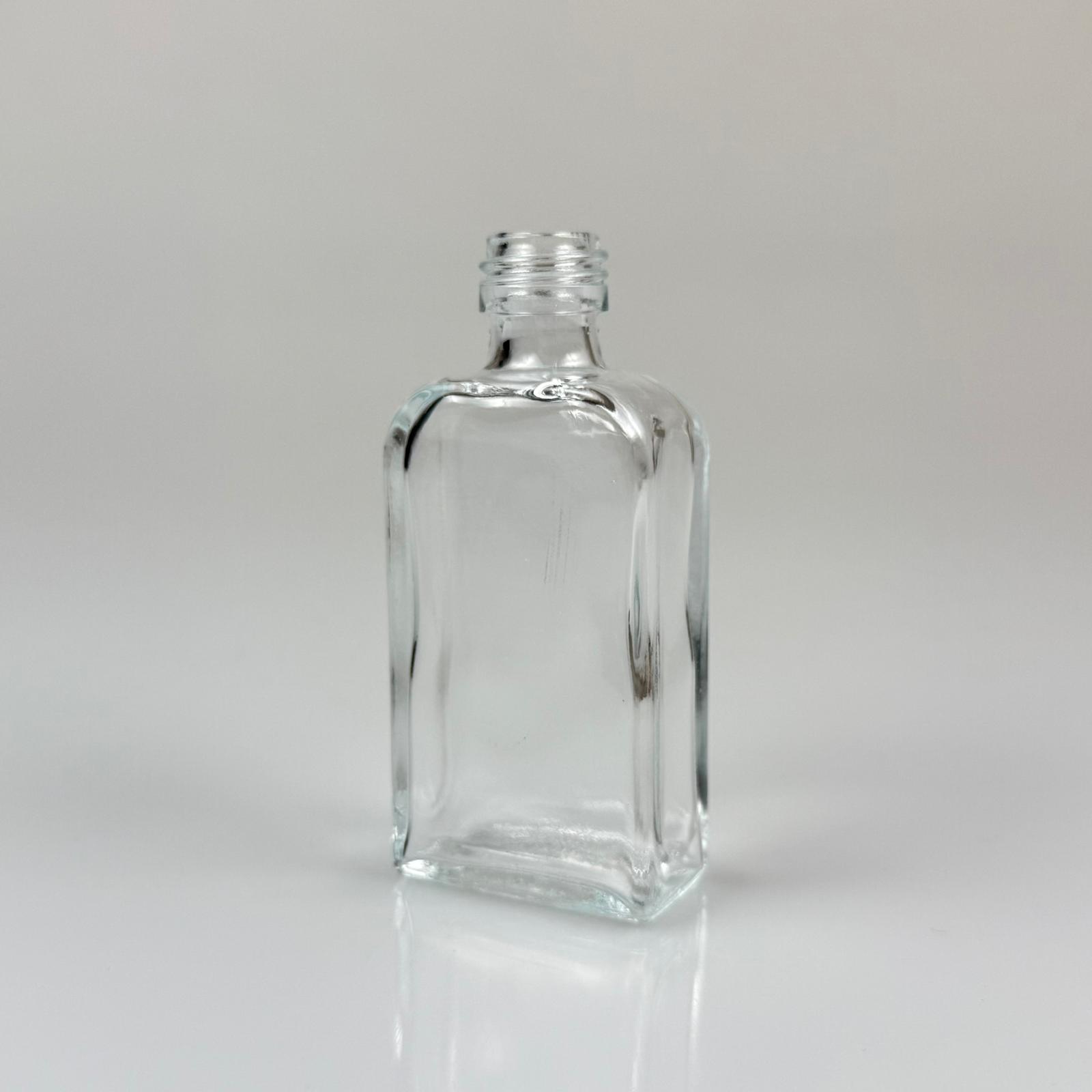 50 CC ŞEFFAF CAM DİKDÖRTGEN ŞİŞE KAPAKSIZ (18 AĞIZ) - 1. KALİTE İTHAL CAM