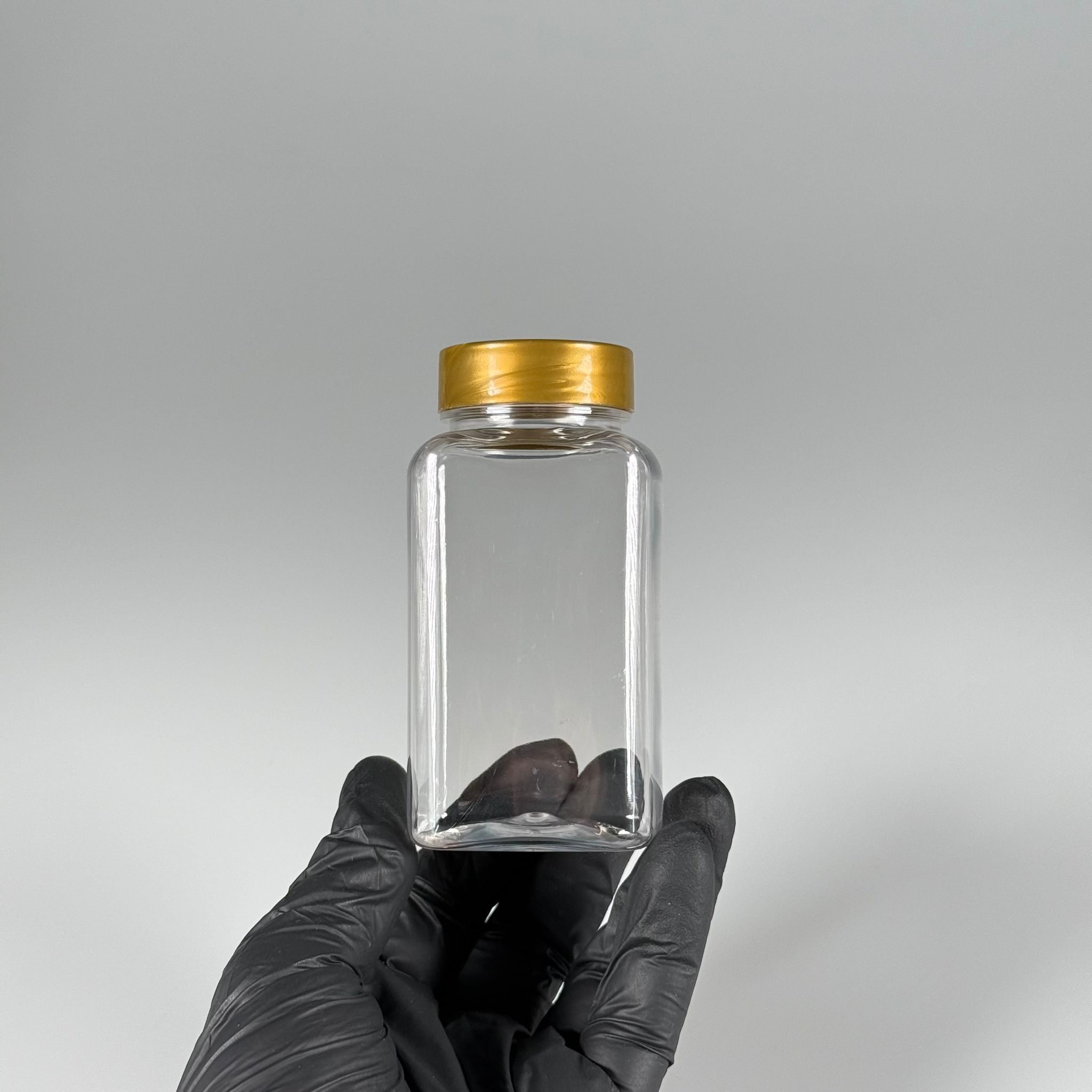 BAHARAT, TOZ, KAHVE, SAHLEP VB MUTFAK DÜZENLEME İÇİN KARE PLASTİK MİNİ KAVANOZLAR - 150 ML - RAF DÜZENLEYİCİ GIDAYA UYGUN KÖŞELİ GOLD KAPAKLI PET KAVANOZLARI