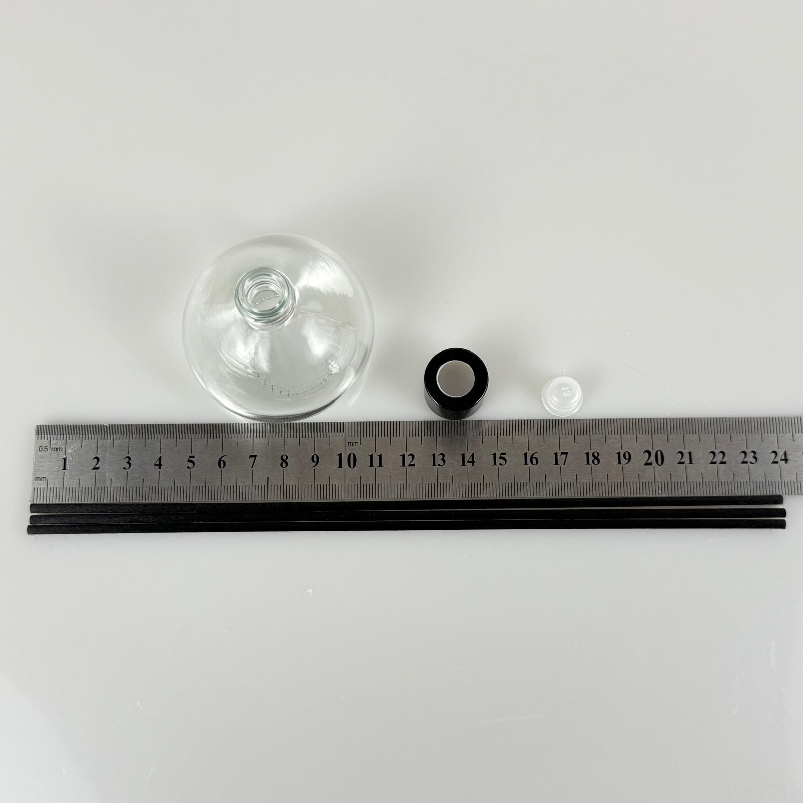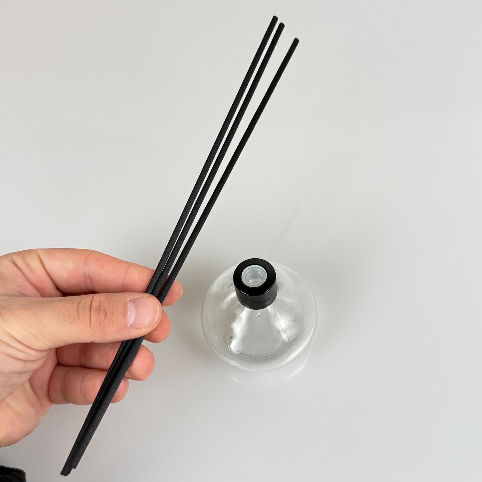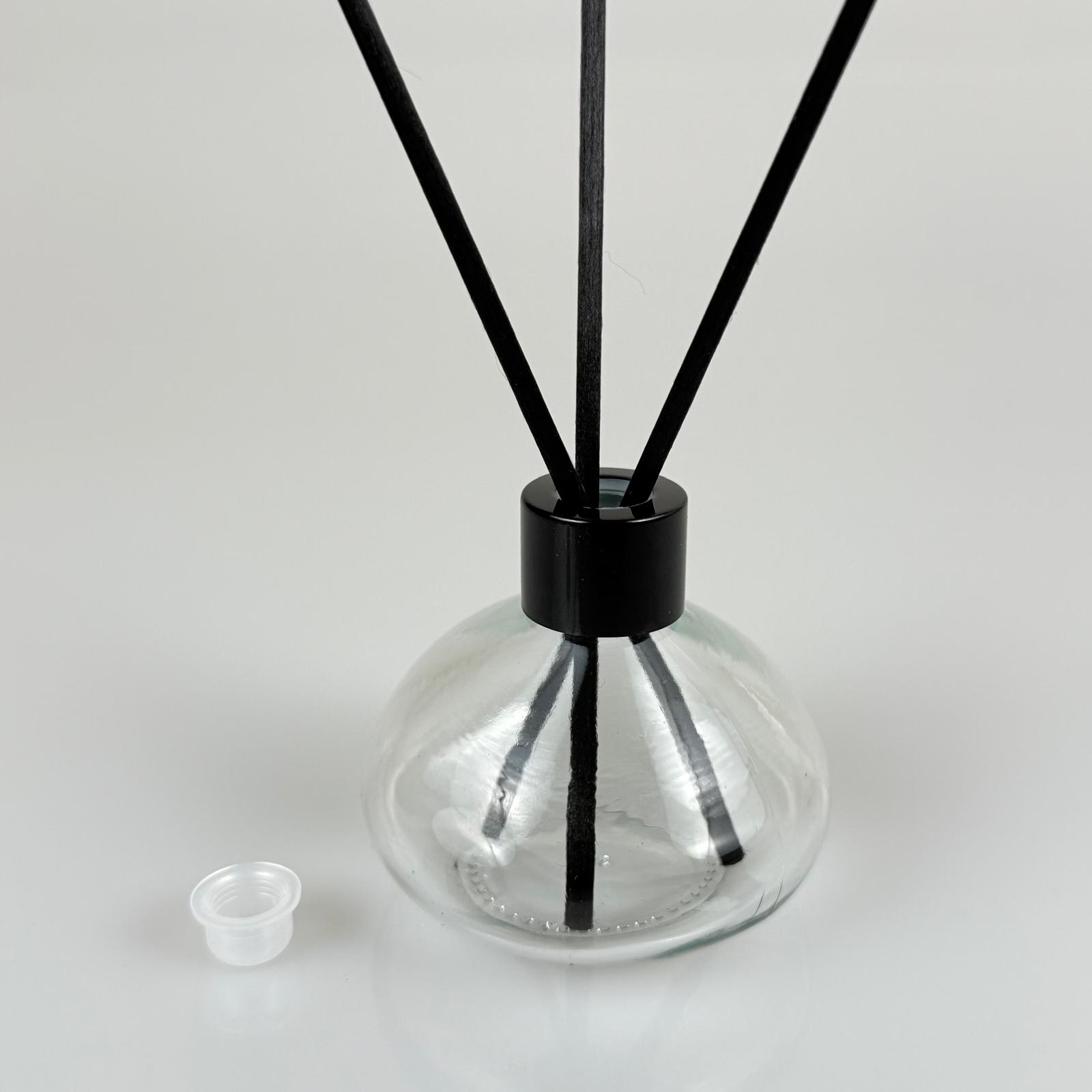 BASIK MODEL CAM BAMBU ODA KOKUSU ŞİŞESİ + METAL SİYAH KAPAK + TIPA + 3 ADET FİBER BAMBU ÇUBUK - 50 ML SET TAKIM - HEDİYELİK PROMOSYON DİFFUSER ŞİŞELERİ