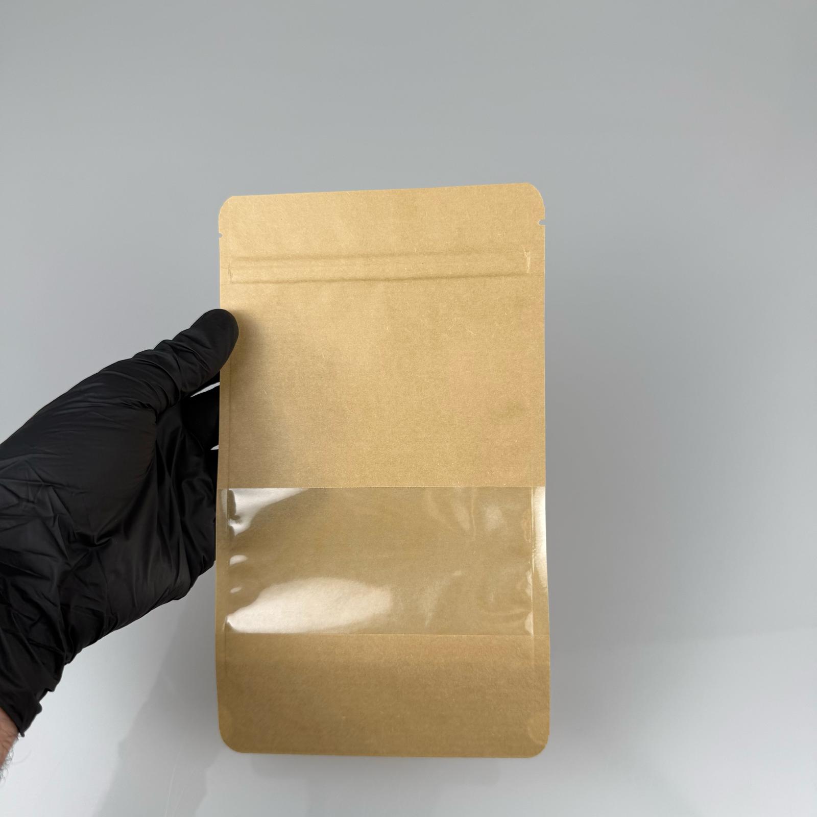 DOYPACK PENCERELİ - KRAFT AMBALAJ 13 X 22,5 CM - 250 GRAM - ÇEREZ, KURU KAHVE, KURUYEMİŞ, AKTAR VB İÇİN ÇITÇITLI KİLİTLİ KESE, KRAFT TORBA, ÇEREZLİK