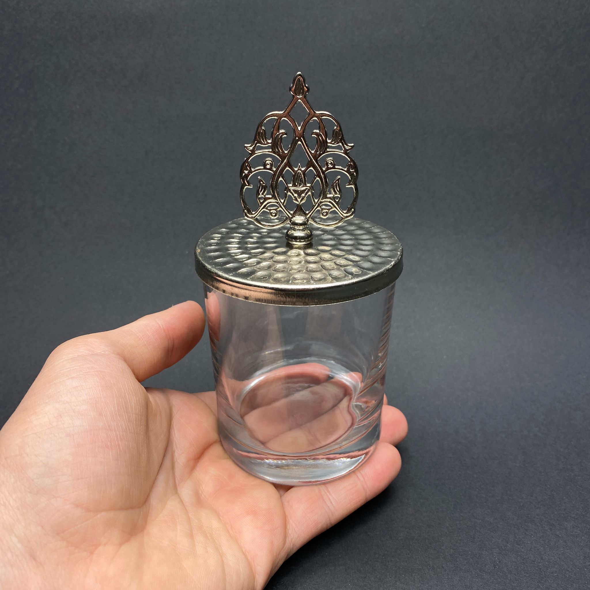 MUM BARDAK DAR - ŞEFFAF - GÜMÜŞ KAPAKLI TEPELİ MUM İÇİN CAM BARDAK - TOPTAN MUM BARDAK - BOŞ MUM BARDAĞI - CAM ŞEKERLİK OLARAK DA KULLANABİLİRSİNİZ