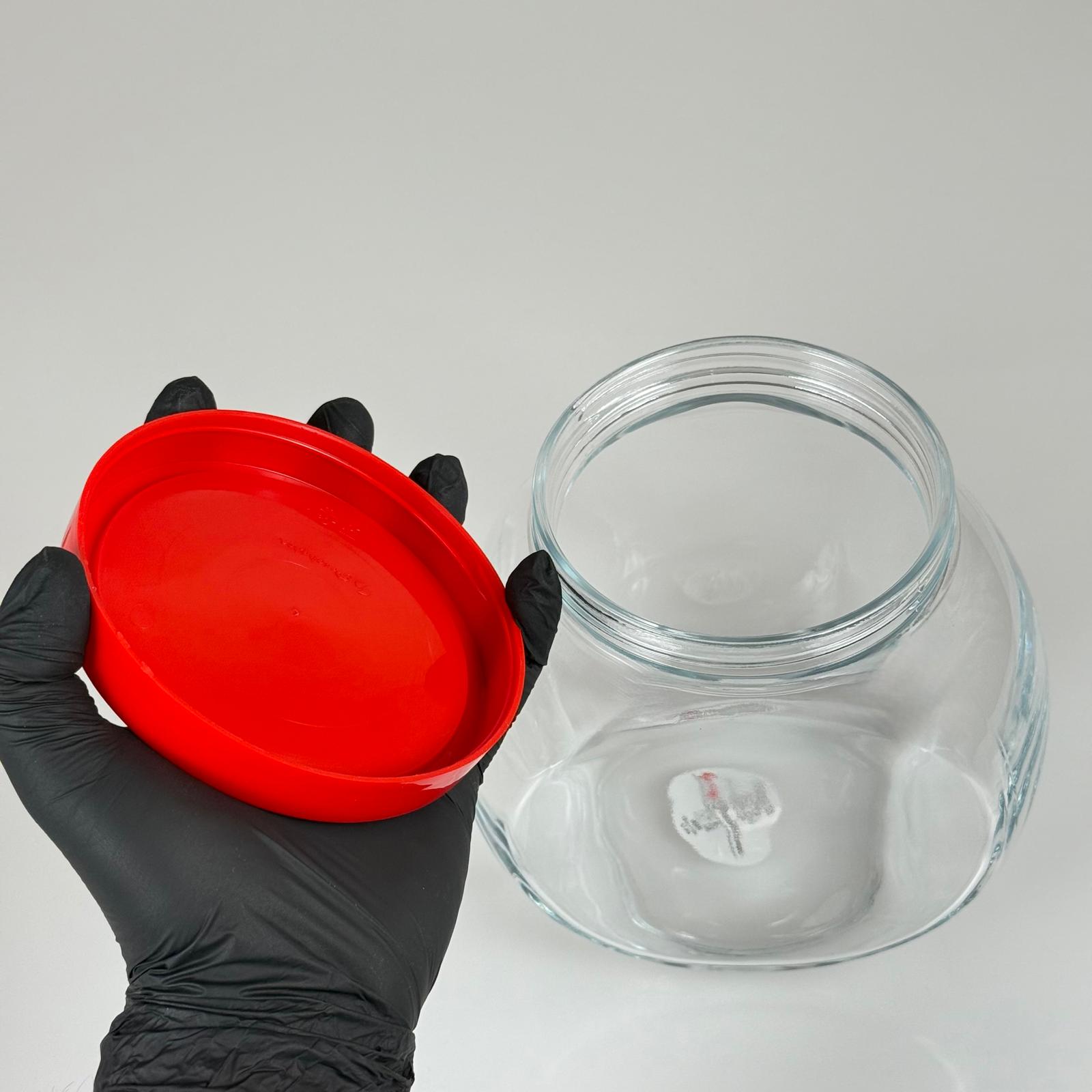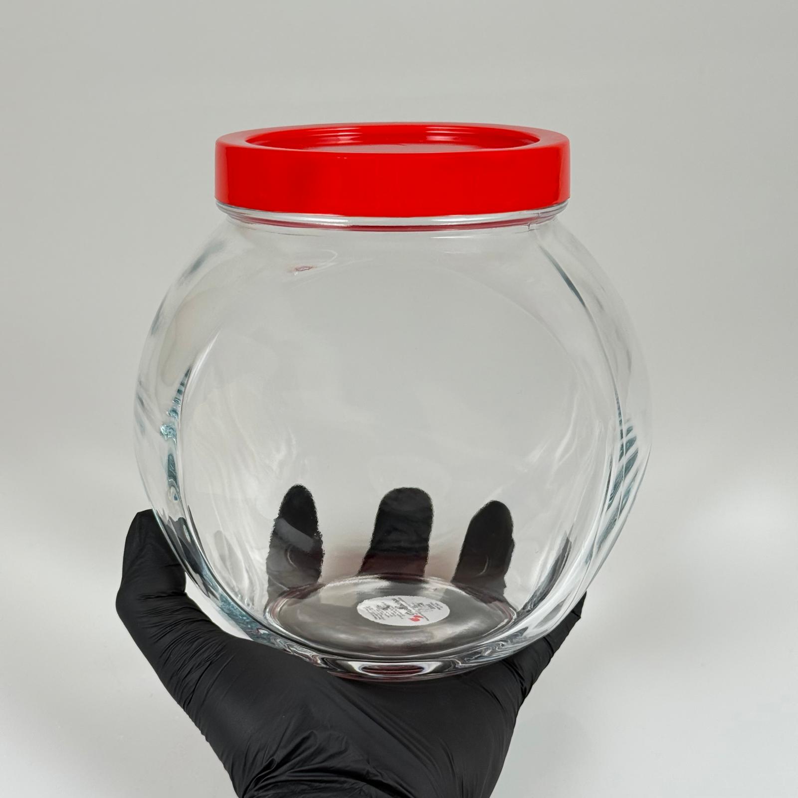 PAŞABAHÇE KODU 80000 ÜÇ DİPLİ YATIK CAM KAVANOZ EBAT 1500 CC - BEYAZ KAPAKLI RAF TEŞHİR KAVANOZU