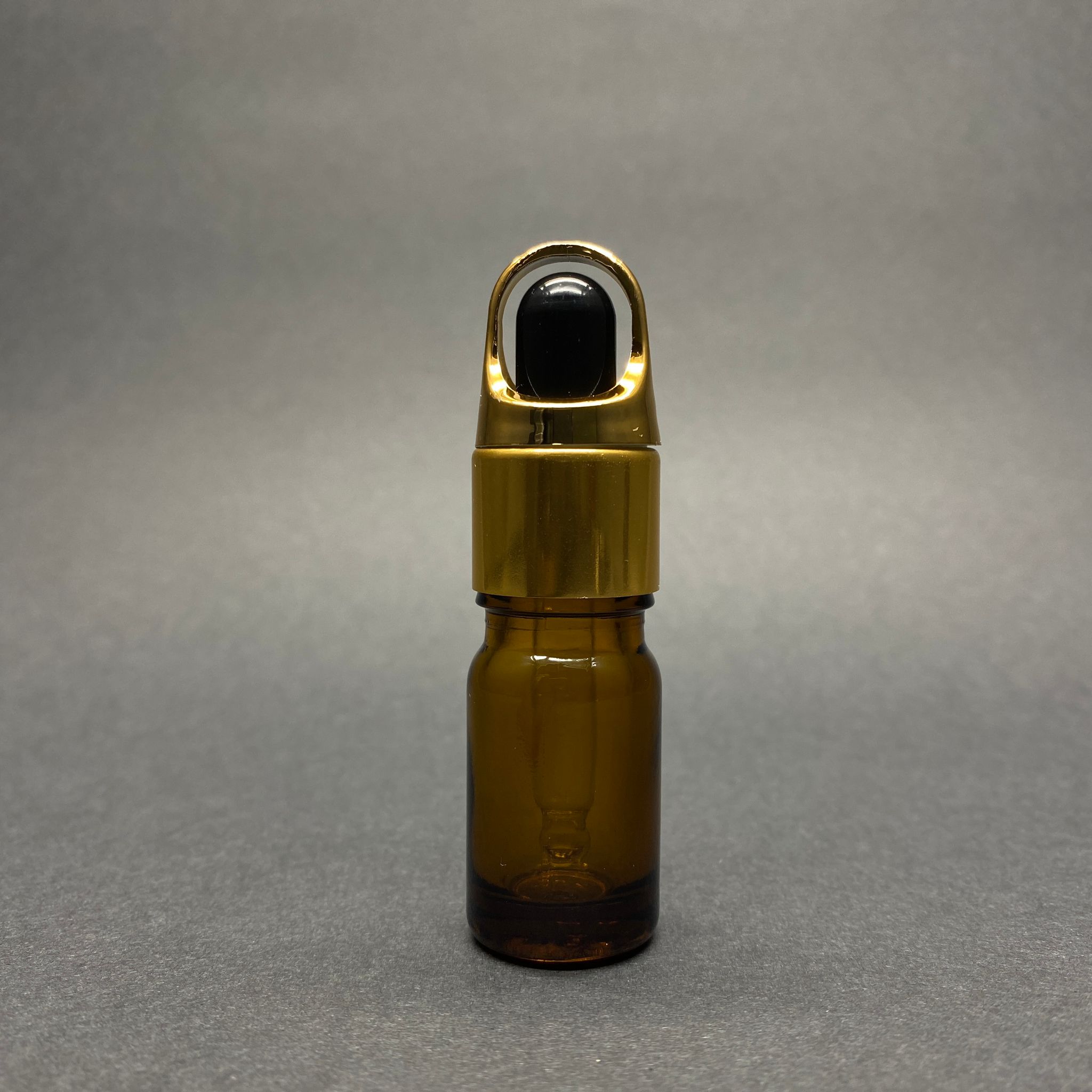 5 CC AMBER CAM DAMLALIKLI ŞİŞE - SİYAH EMZİK - GOLD FLOWER SEPET MODEL METALİK KAPAK - 5 ML CAM DAMLALIKLI ŞİŞE