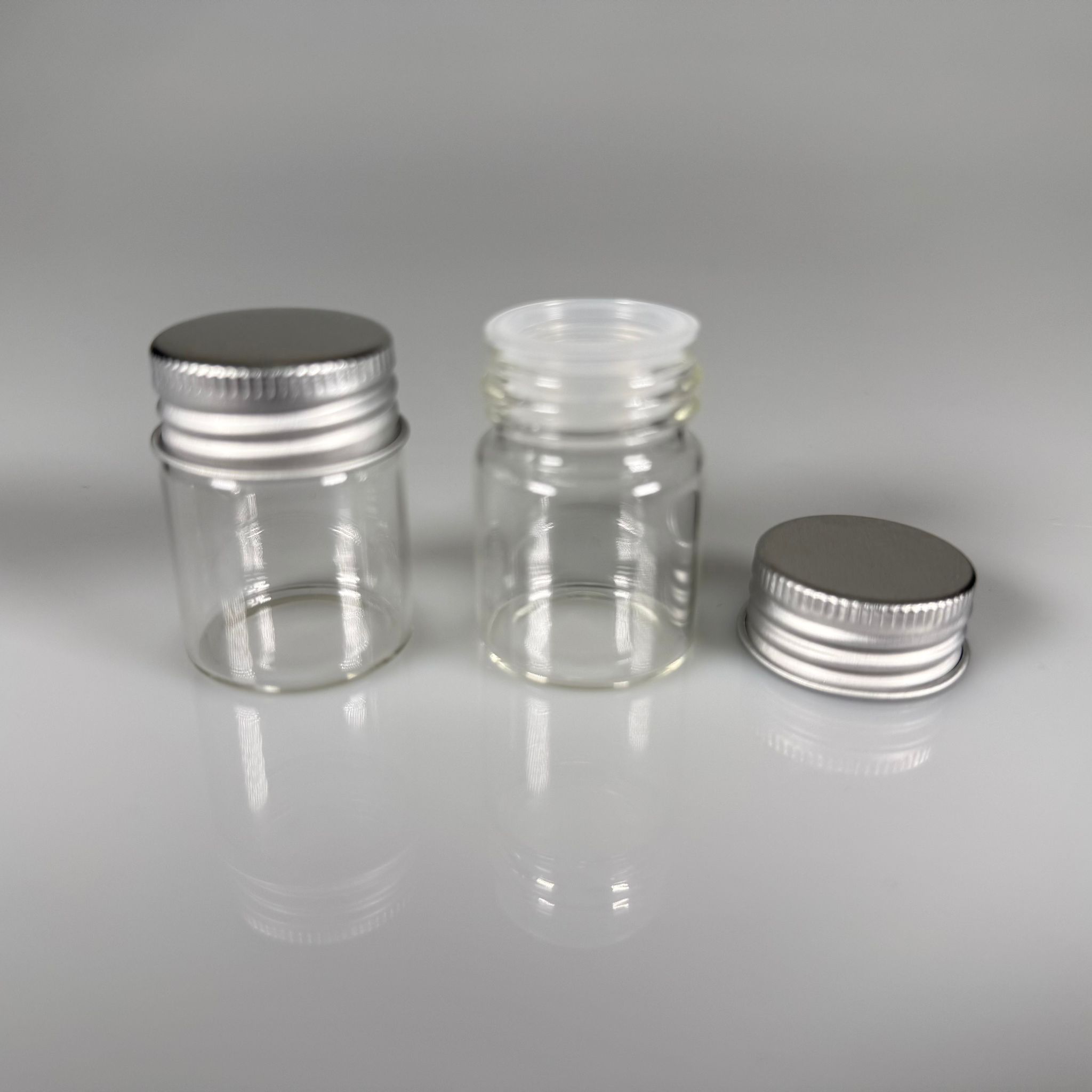 15 CC CAM KAVANOZ + GÜMÜŞ METAL KAPAK + SIZDIRMAZ KÖR TIPA TAKIM